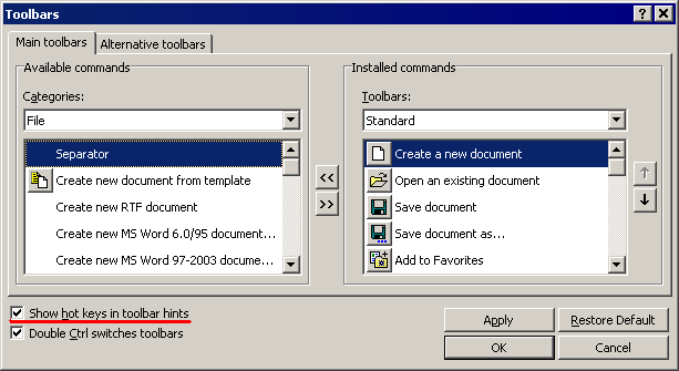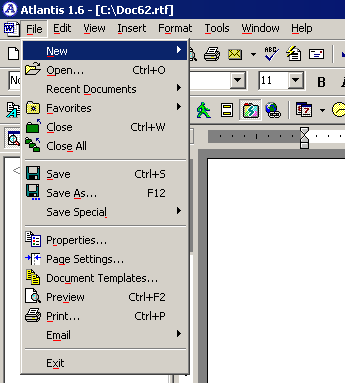Again, Atlantis and MS Word 2007 work completely identically in this aspect. MS Word 2007 also does not display all its commands (there are multiple categories of commands).