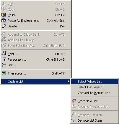 2. Choose the "Outline List | Select Whole List" command from the context menu: