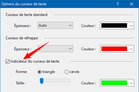 Pour améliorer la visibilité des curseurs de texte, vous pouvez activer des indicateurs supplémentaires :