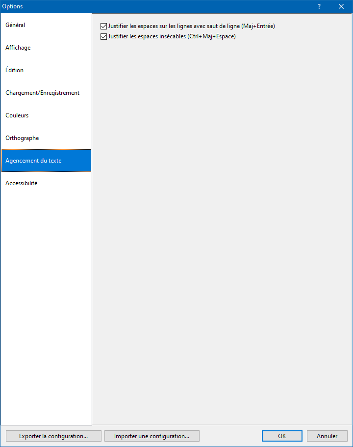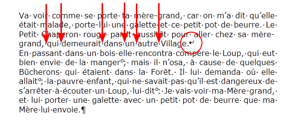 Attention ! Cette option ne concerne pas les espaces insécables suivis des signes de ponctuation suivants :