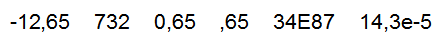 L'expression à calculer peut comprendre aussi bien des nombres entiers que des nombres réels. La notation peut être scientifique ou en virgule flottante :