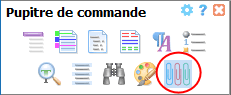 Vous accéderez à vos collections d'inserts en affichant le volet correspondant du pupitre de commande d'Atlantis. Ce volet s'affiche en cliquant sur le bouton dédié de la barre d'outils supérieure de ce même pupitre de commande :