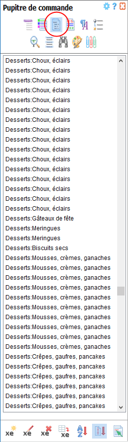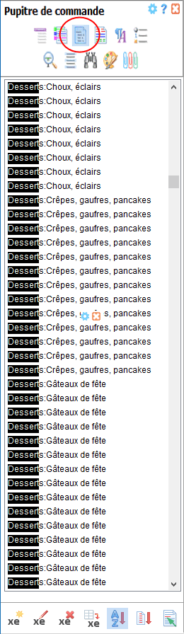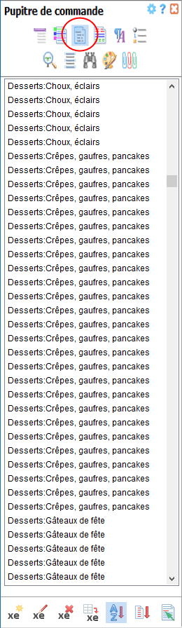 La barre d'outils située au bas du volet Index comprend toutes les commandes relatives à la gestion des entrées d'index. En voici une description détaillée :