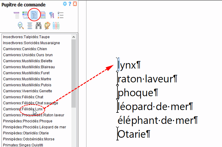 Un clic sur ce bouton déplace le curseur d'insertion dans la fenêtre de document jusqu'à la marque d'index correspondante. |