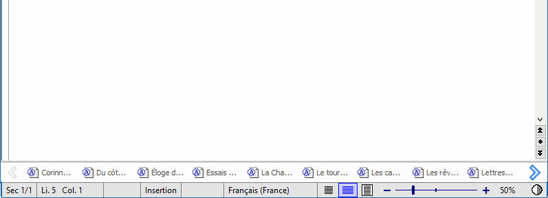 Un clic de souris sur ces boutons à flèches fait défiler la barre des documents de façon à ce qu'apparaissent les boutons qui ne sont pas actuellement visibles.
