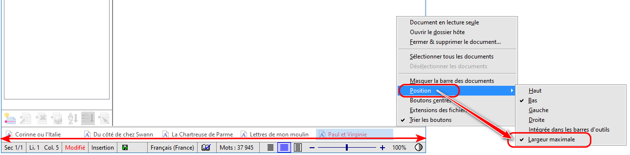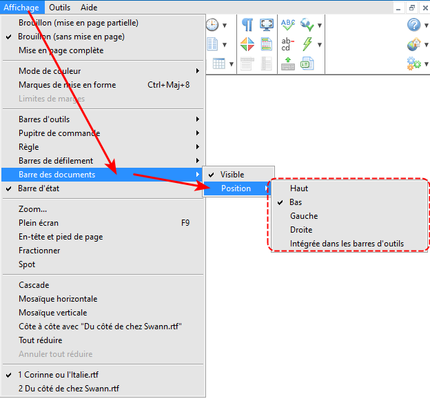 Vous pouvez donc changer la position de la barre des documents à votre guise. Vous avez alors 2 possibilités. Vous pouvez, au choix :