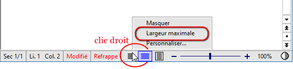 Notez que l'option Largeur maximale est également disponible dans le menu contextuel de clic droit de la barre d'état :