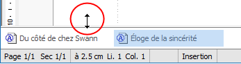 Maintenant, voici comment redimensionner la barre des documents lorsqu'elle est positionnée hors de la zone des barres d'outils, c'est-à-dire au-dessus, en dessous, à gauche, ou à droite de la fenêtre de document :
