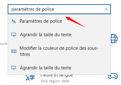 Vous pouvez également désinstaller des polices de caractères. Ouvrez les Paramètres de Windows et recherchez les paramètres de police :