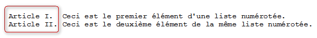 Dans le cas des listes numérotées, chacun des éléments de la liste est précédé d'un numéro faisant partie d'une série arithmétique ordonnée. C'est ce qui permet d'identifier chaque élément comme appartenant à la même liste :