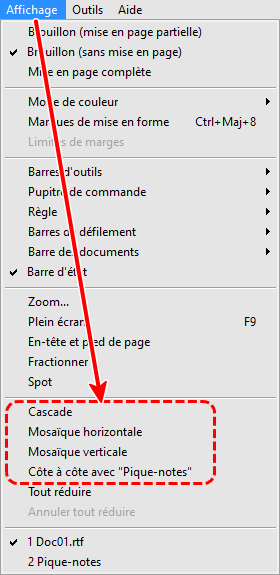 Notez que le menu principal Affichage comprend, lui aussi, ces mêmes 3 commandes vous permettant de choisir le mode d'affichage des documents :