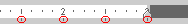 La position des taquets de tabulation par défaut est matérialisée dans la zone se trouvant immédiatement en dessous de la partie centrale, plus claire, de la règle. Dans l'illustration ci-dessous, les cercles rouges indiquent la position des taquets de tabulation par défaut :