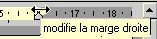 Si vous faites glisser doucement votre pointeur de souris au-dessus de la ligne séparant les marges de la règle de sa partie centrale, votre curseur prend la forme d'une flèche à double sens matérialisant la limite de marge. Vous pouvez alors déplacer ce curseur de re-dimensionnement spécial dans la direction qui vous convient de façon à déplacer la limite de marge, c'est-à-dire à agrandir ou réduire la marge concernée :