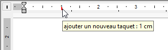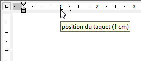 D'une manière générale, en plaçant le pointeur de la souris au-dessus d'un taquet de tabulation, vous ferez apparaître une infobulle précisant sa position exacte :