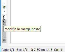 La taille des marges du document peut se mesurer directement à partir des graduations de la règle, mais vous pouvez aussi avoir une indication visuelle immédiate de la valeur des marges sous la forme d'une infobulle si vous placez votre pointeur de souris au-dessus de la marge visée :