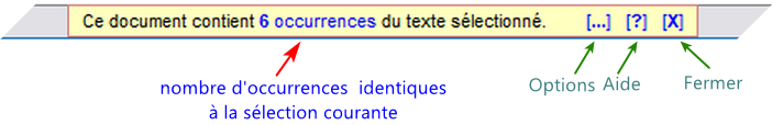 • Aperçus liés au passage de la souris. Lorsque cette option est active, et que vous maintenez le pointeur de la souris au-dessus du nombre d'occurrences indiqué sur la barre d'état :
