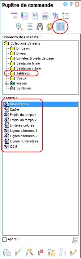 Ces mêmes tableaux peuvent être insérés d'un seul clic à partir de la tableauthèque associée au bouton