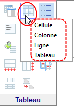 (Barre d'outils contextuelle - Tableau), et en choisissant votre cible dans le menu qui apparaît :