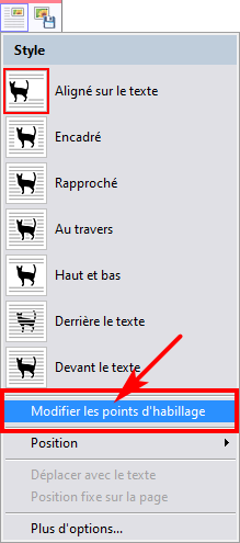 Parmi les styles d'habillage possibles pour une image, les styles Rapproché et Au travers sont associés à ce qu'on appelle des points d'habillage :