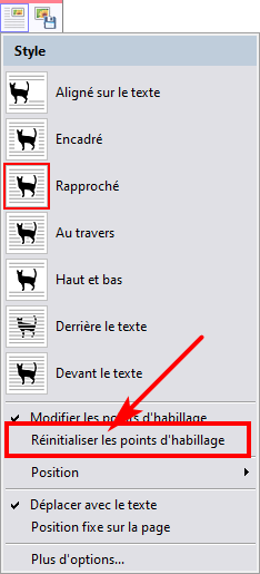 Pour supprimer tous les points d'habillage, c'est-à-dire pour en revenir aux 4 points d'habillage traditionnels de toute image, utilisez la commande Réinitialiser les points d'habillage du menu de Mise en page de l'image :