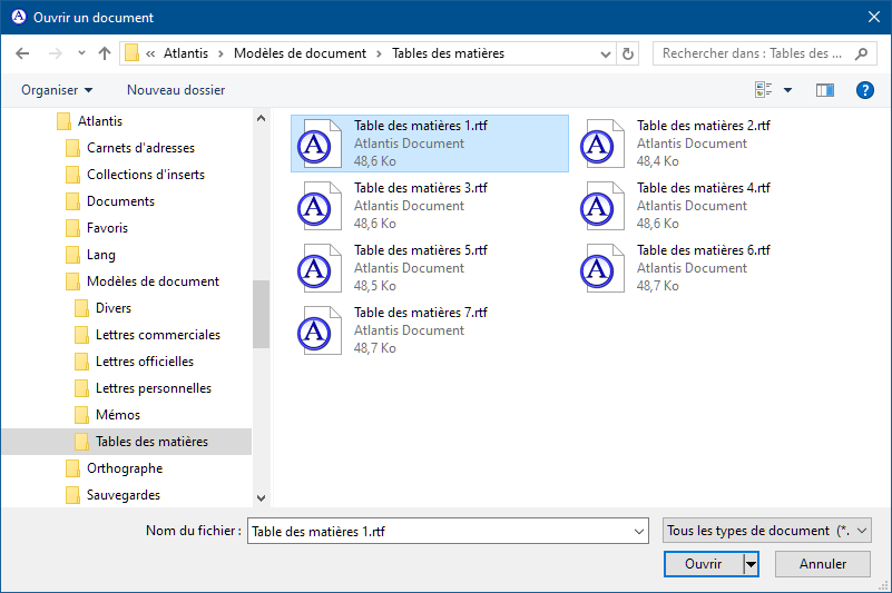 Les commandes Fichier | ouvrir…et Fichier | Enregistrer sous… d'Atlantis ouvrent des boîtes de dialogue au design moderne intégrant les dernières fonctionnalités du gestionnaire de fichiers de Windows :