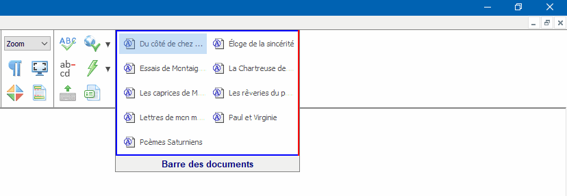 Par contre, quand cette option est désactivée, les boutons sont disposés de gauche à droite à l'intérieur de la barre des documents horizontale :