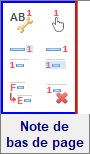 que vous trouverez dans la barre d'outils contextuelle "Note de bas de page"; et le bouton que vous trouverez dans la barre d'outils contextuelle "Note de fin".