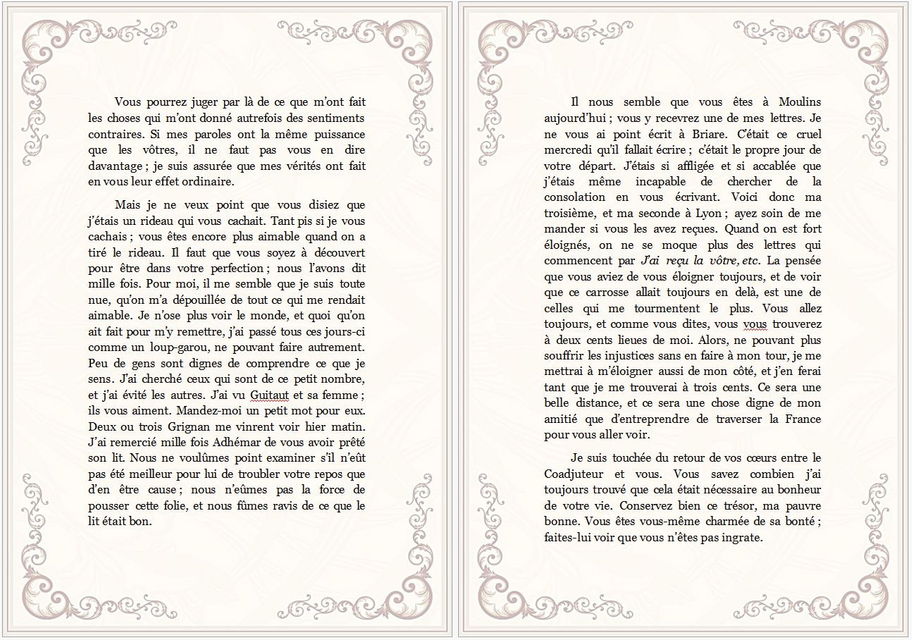 Vous pourrez vouloir rendre les pages de vos documents plus attrayantes en leur ajoutant une image d’arrière-plan. Ce pourra être l’image d’un vieux parchemin, un cadre décoratif, un logo en filigrane, par exemple :